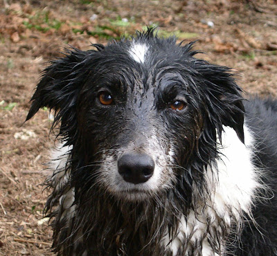 Spring in Seattle means rain, more rain, moss removal and spring clean-up. Did I mention the rain? Have I also mentioned the guaranteed puddles that develop as well? Often times we'll see ducks using our pasture as a swamp area and other times our dogs put their personal watering holes to good use. That's what my Border Collie, Spot did today while I was out doing yard work.