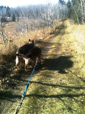This afternoon I took everyone for a walk, to spend some quality time with all of them. I played hookey from SchH to do it, but it is important because I am heading off to Maui and needed to give all of the dogs fair time today. I am so lucky to have a house sitter coming to stay with the dogs while I am away!