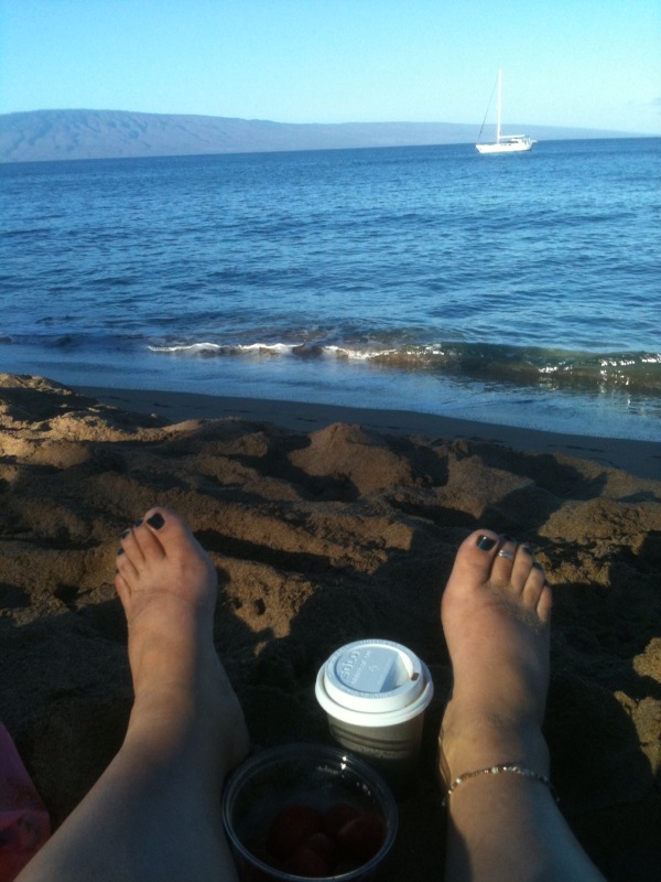 My chaise lounge. I walked this beach up and down every day, but did spend time reading in the sun (when I was not in the retreat with Wayne Dyer or traveling to Lahaina and on the Road to Hana.) The trip was too short, only a week! I am planning the next visit already!